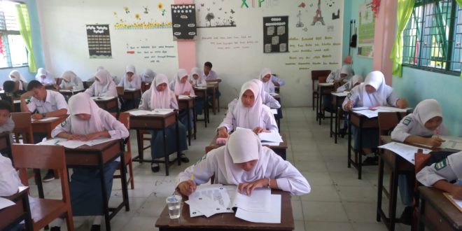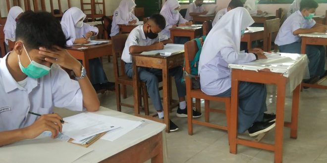 Gosmakarupdate, Terlihat sedang memikirkan jawaban mana yang benar dari soal yang diberikan, juga terlihat juga seorang siswi (belakang) sedang melihat jam untuk melihat waktu yang tersisa. Sudah menjadi rutinitas tahunan dimana Ujian Akhir Sekolah di gandeng atau bersamaan dengan Ujian Mid Semester Genap Tahun Pelajaran 2020/2021. Ujiannya sendiri di laksanakan secara tatap muka di SMA Kartika I-5 Padang, standar protokol …